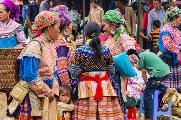 Les Marchés Ethniques : Autour de Sapa et Bac Ha, les marchés forains du dimanche (comme celui de Bac Ha ou Cán Cấu) sont des lieux de rencontre et d’échange des différentes minorités, offrant un spectacle fascinant de couleurs et de costumes traditionnels.